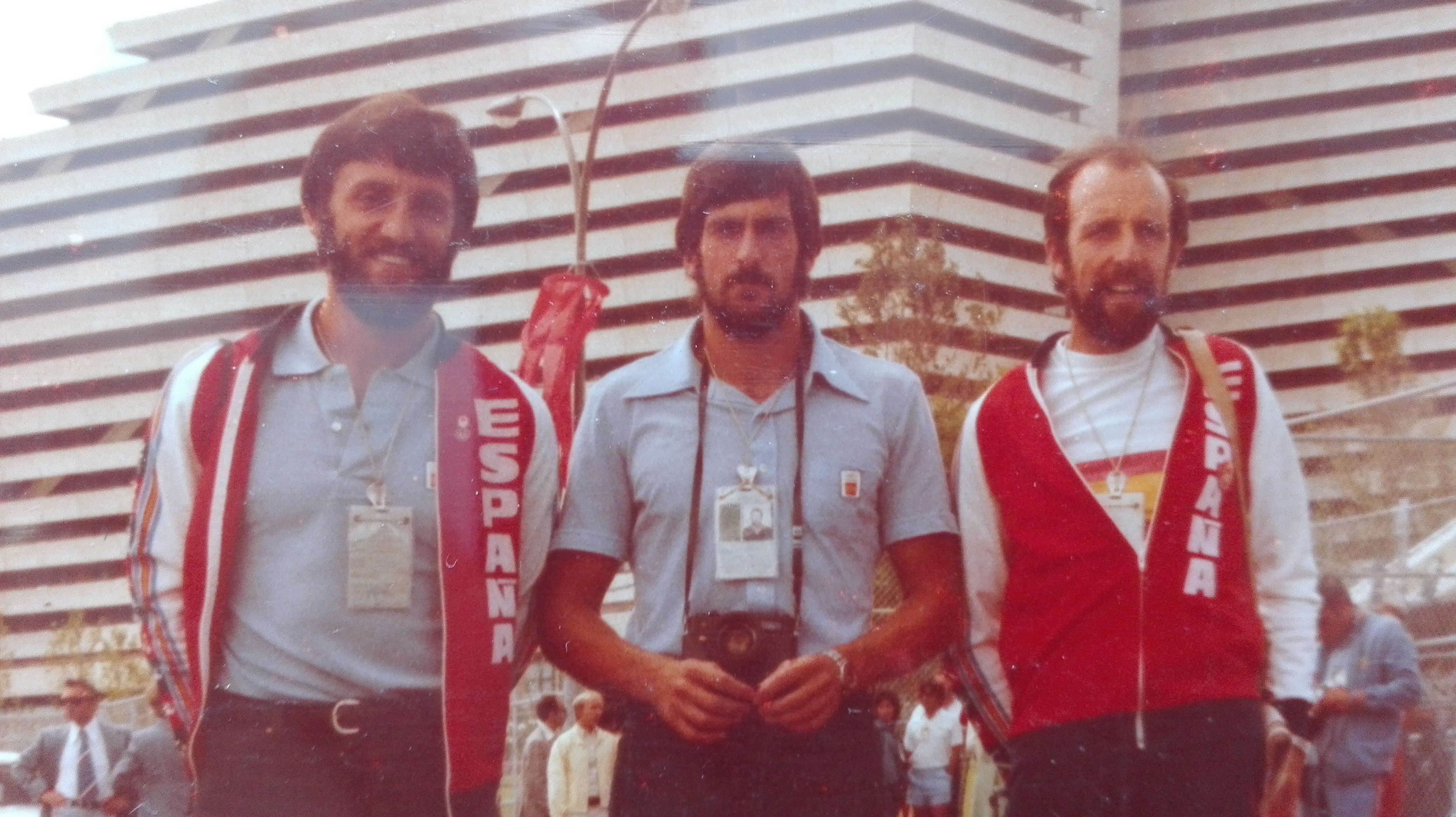 La representación del Club Piraguas Los Gorilas de Candás en Montreal 1976. De izq. a decha.: Herminio Menéndez, Ramón Menéndez Palmeiro («Moncho») y Amando Prendes.